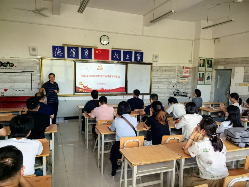 在第一议题中,城轨党总支书记任庆国领学了《习近平在纪念中国人民抗日战争暨世界反法西斯战争胜利80周年大会上发表重要讲话》全文。随后传达了学校《关于开展纪律教育学习宣传月活动的通知》精神,对党纪主题教育学习、典型案例警示教育、党纪党规知识测试等工作作了详细安排,对党支部和教师党员提出具体要求。