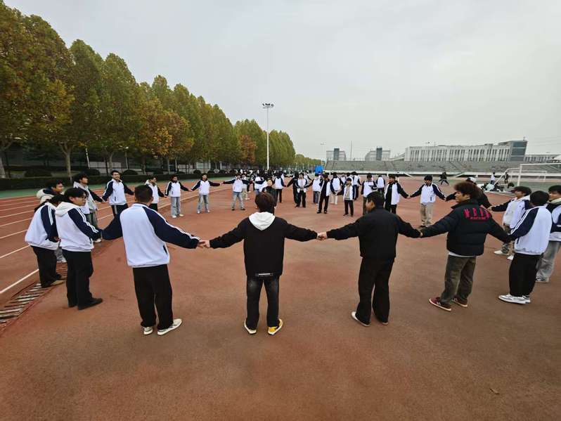 活动现场氛围热烈,三个精心设计的环节层层递进。趣味自我介绍环节中,同学们结合城轨盾构专业特色与个人爱好,用幽默的语言、独特的肢体动作展示自我,有的分享对专业的憧憬,有的展现兴趣特长,陌生感在欢声笑语中逐渐消融。情有千千结环节里,同学们手拉手形成复杂“绳结”,在不松手的前提下默契配合、共同解结,过程中大家不断沟通调整策略,深刻体会到团队协作与包容理解的重要性。蒙眼触摸环节则将活动推向高潮,蒙眼同学在同伴的引导下触摸识别队友,肢体接触与语言指引让彼此的信任度大幅提升,进一步拉近了心理距离。