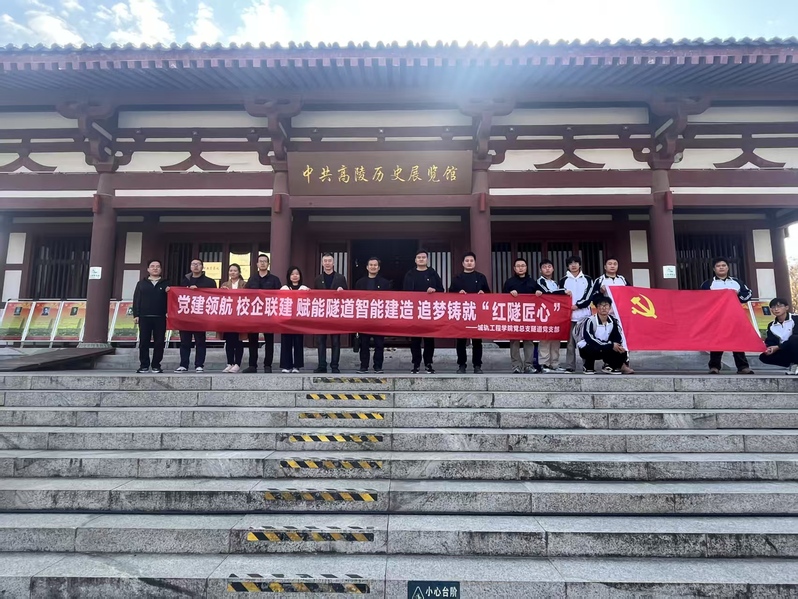 为深化党史学习教育成果,推动隧道工程智能建造技术革新,城轨工程学院党总支隧道党支部于11月13日组织党员及社团骨干成员赴高陵党史研究院、中交第二公路工程局市政污水顶管项目部开展“党建领航·赋能隧道智能建造”主题党日品牌活动与技术交流活动。此次活动通过党史学习与实地调研相结合,探索党建与业务深度融合的新路径,为隧道工程智能化发展注入新动能。