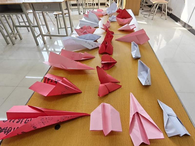 折叠多样感恩造型环节将活动推向高潮。同学们在完成爱心折叠后,又充分发挥创意,将彩纸折叠成千纸鹤、星星、小船等各具特色的造型,同样在上面写下感恩寄语。大家将折好的各类造型整齐摆放于展示区,组成“感恩成长”主题陈列。色彩斑斓的造型与真挚的文字相映成趣,吸引了同学们纷纷驻足欣赏、交流感悟。大家纷纷表示,亲手折叠不同造型的过程充满意义,不仅锻炼了动手能力,更让感恩之情在创作中深深扎根。
